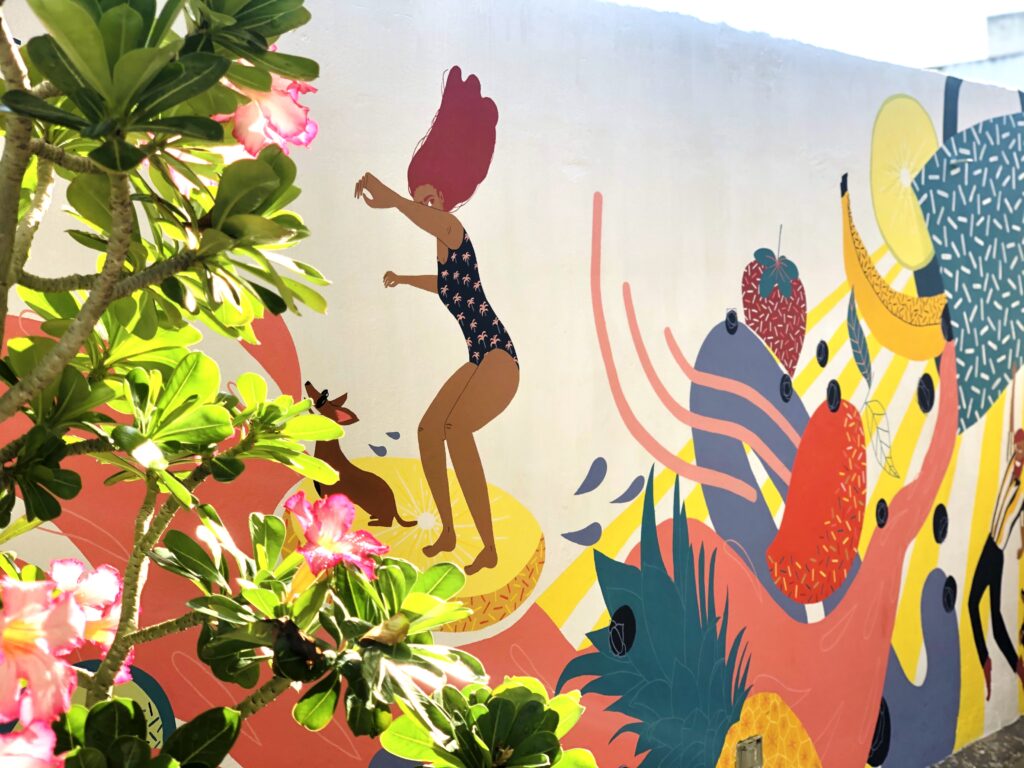 Depuis 5 ans maintenant, elle sillonne les routes ! Et a entre autres réalisé une fresque aux Honduras pour un centre de Yoga que vous pouvez découvrir ci-dessous ! Cela lui a permis également de mettre un pied dans la réalisation de peintures murales. Elle ne s’est pas arrêtée là, car elle a réalisé également 5 autres fresques au Mexique !