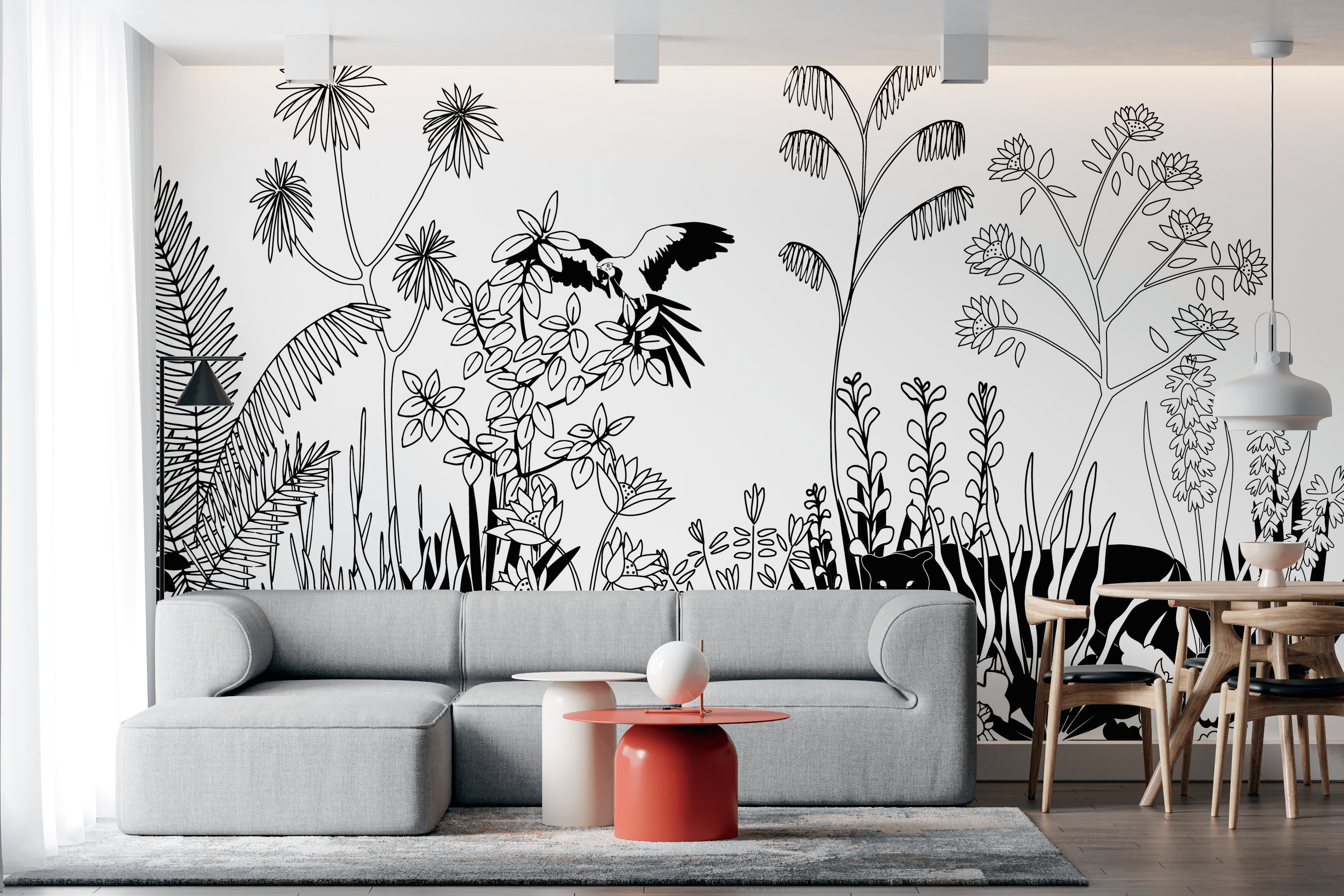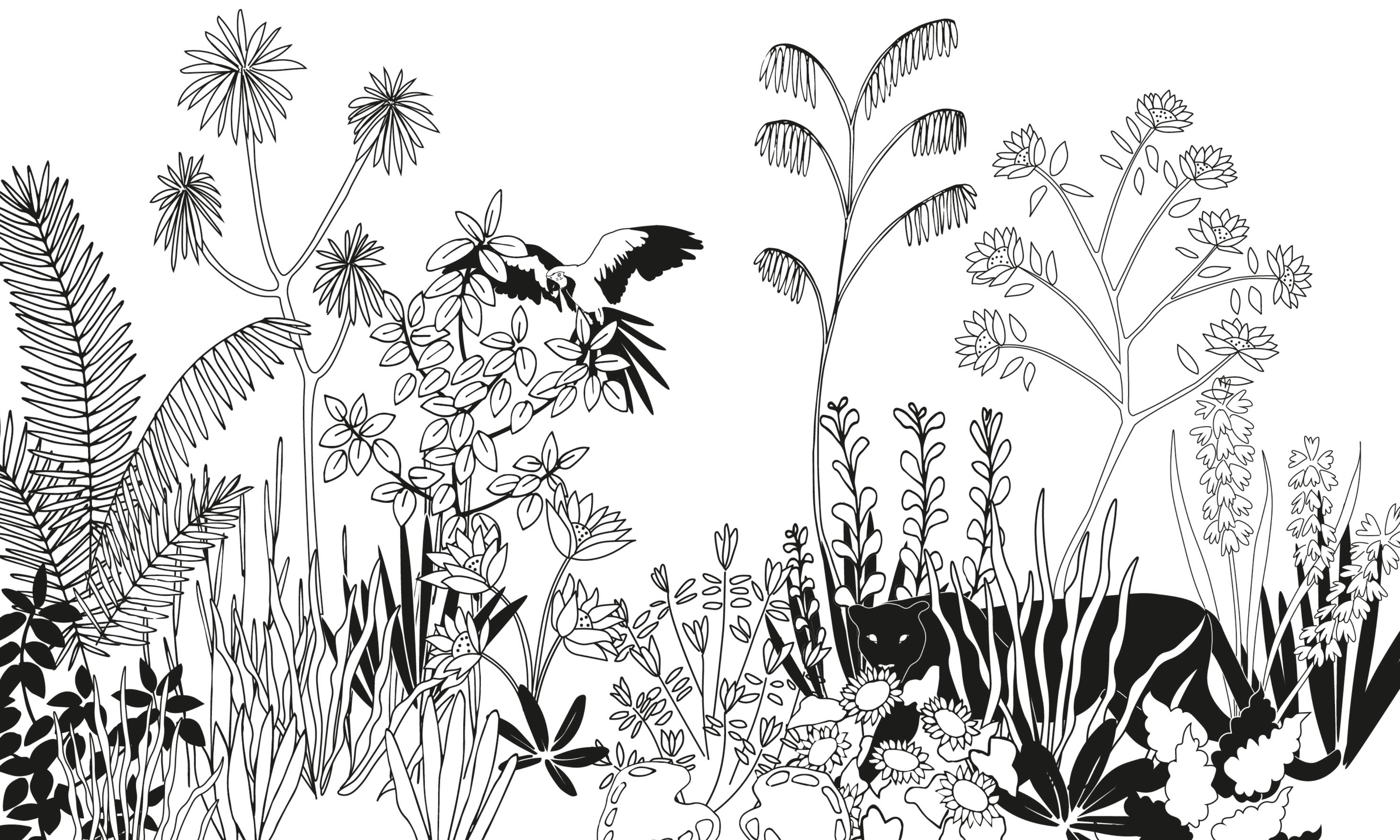 Papier Peint Fresque de la jungle noir et blanc