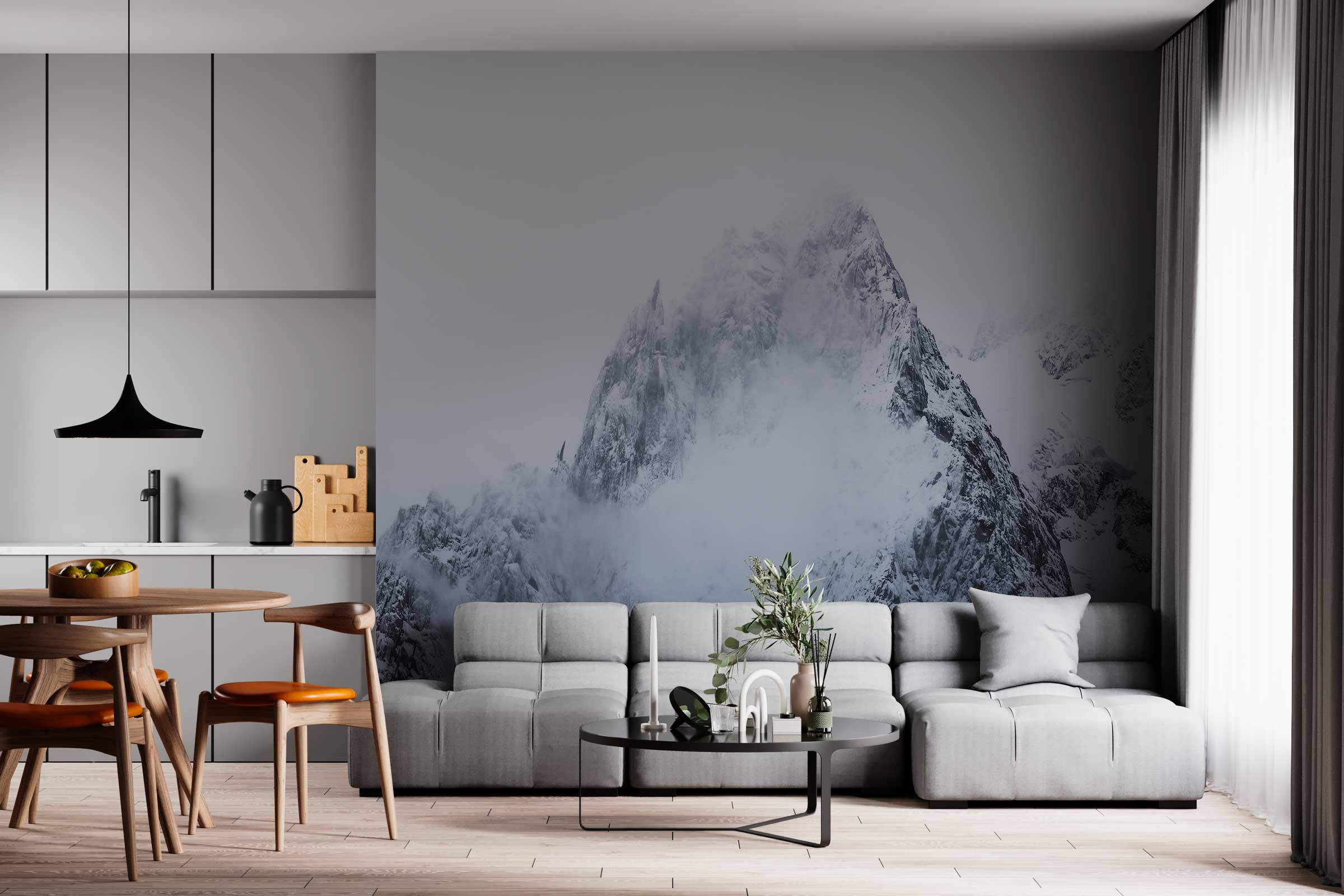 Invitez les majestueuses aiguilles de Chamonix dans votre salon avec ce papier peint sur-mesure capturé par le photographe Niels Saint Viteux.