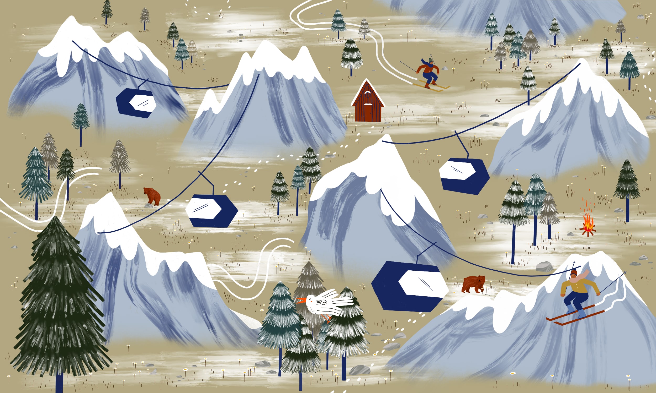 Partez à la montagne avec ce papier peint signé Elodie. Elle avait déjà réalisé une série de promenades : Promenade d’Eté,Promenade Méditerranéenne et Promenade Latine. Cette fois-ci elle nous propose une version hivernale avec cette mise en scène à la montagne ! Vous n’avez plus qu’à chausser les skis et dévaler la piste ! Ce papier peint est disponible également dans d’autres teintes.