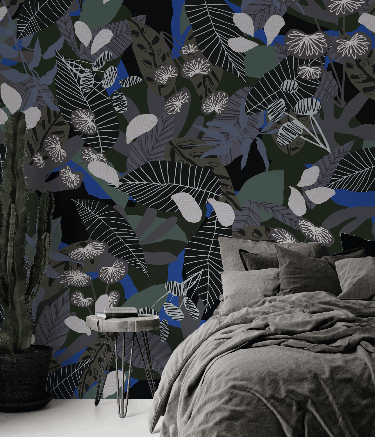 Notre Artiste Aarhome, Hélène nous propose un version modernisé du thème jungle avec ce papier peint Virentia où différentes végétations se rencontrent !