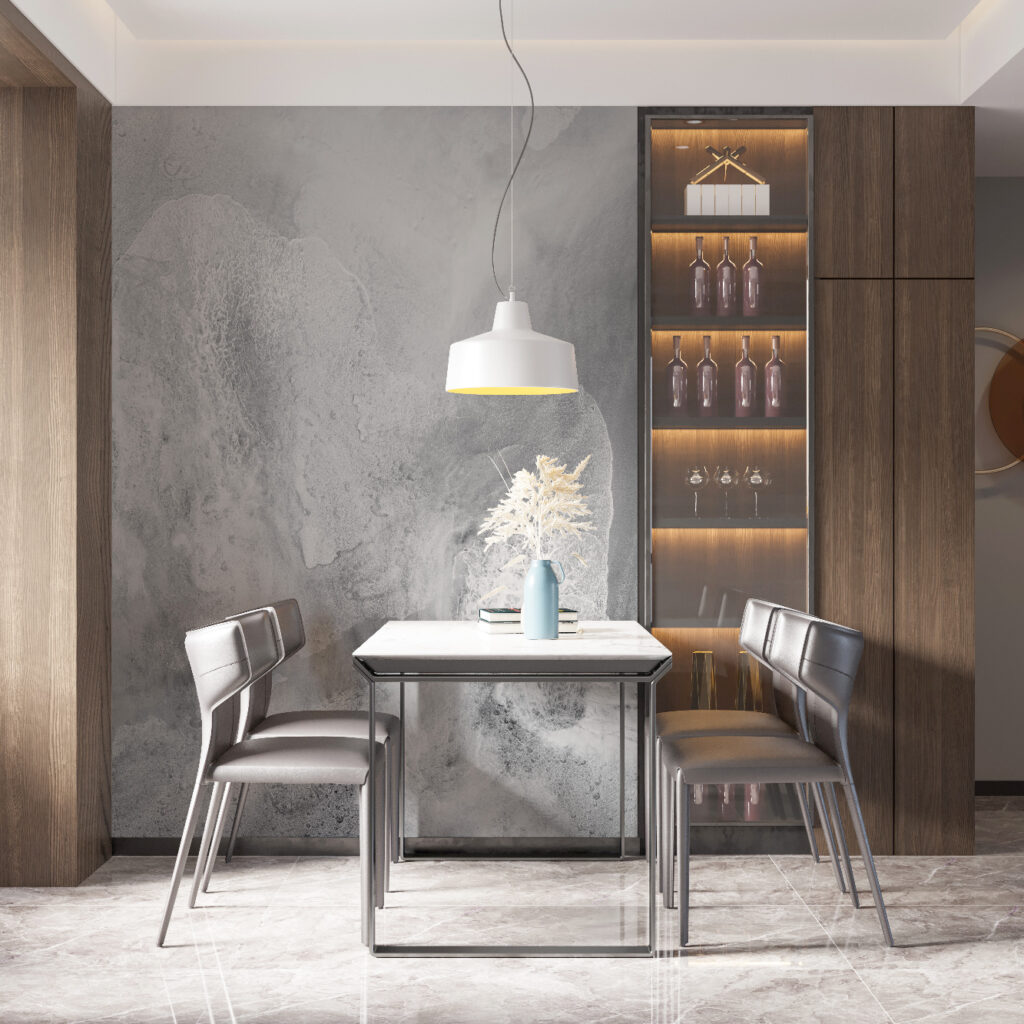 «Travailler l’illusion de la matière à travers le mouvement de l’eau pour un rendu de matière brut, par le travail des nuances gris, tel était le pari de cette création»